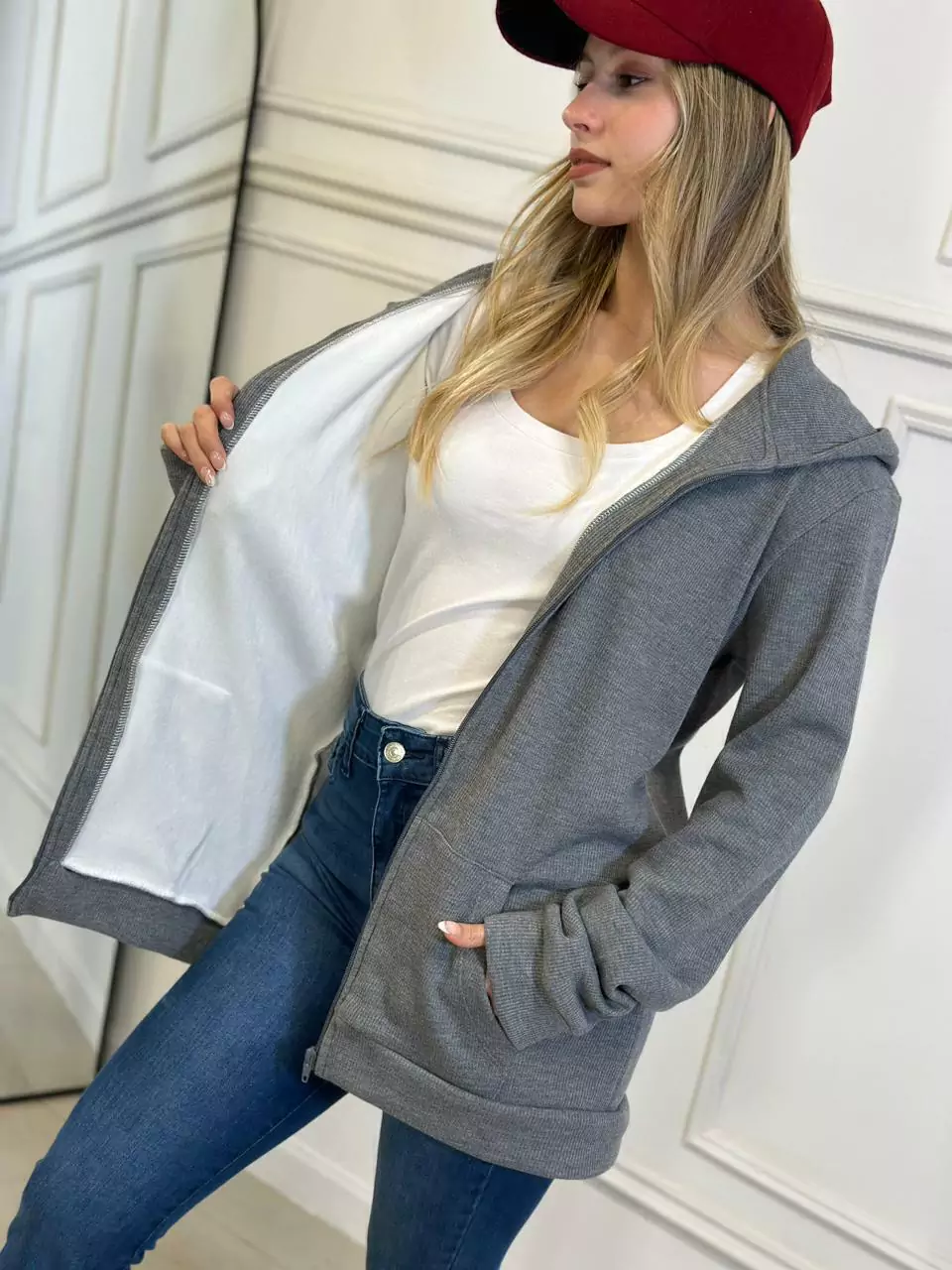 Campera Penélope, una prenda que combina estilo y comodidad en su máxima expresión. Fabricada con un exclusivo tejido de waffle rústico y forrada con plush, esta campera es perfecta para mantenerte abrigado sin sacrificar el estilo.