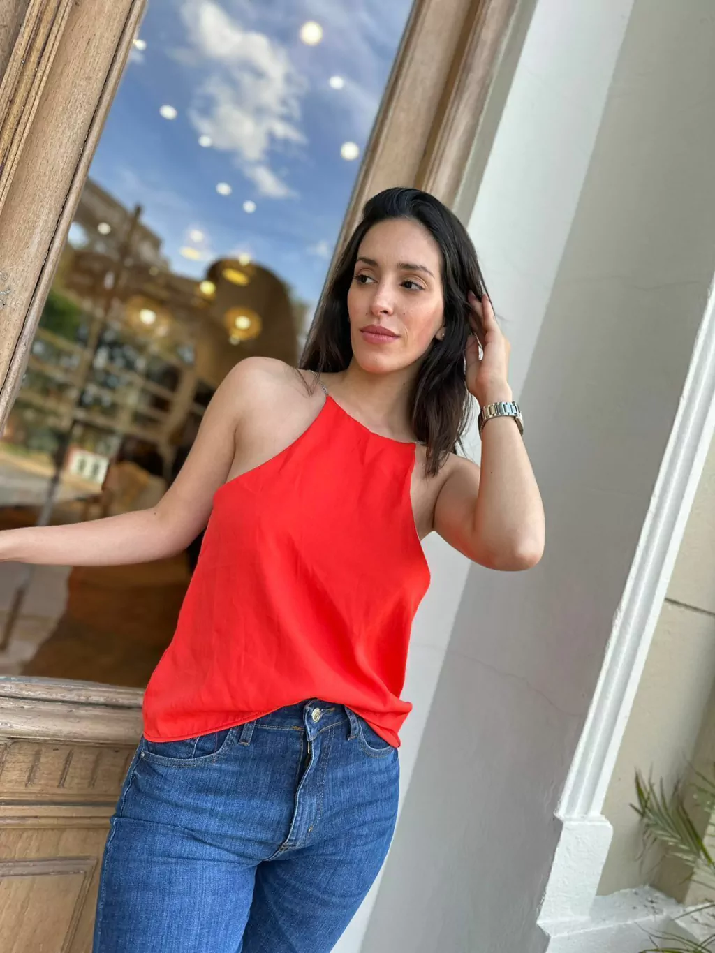 Musculosa Shine Colors, una prenda que combina estilo y sofisticación con un toque deslumbrante gracias a sus tiras de strass. Este modelo es perfecto para quienes desean destacar en cualquier ocasión, ya sea una salida casual o un evento especial.